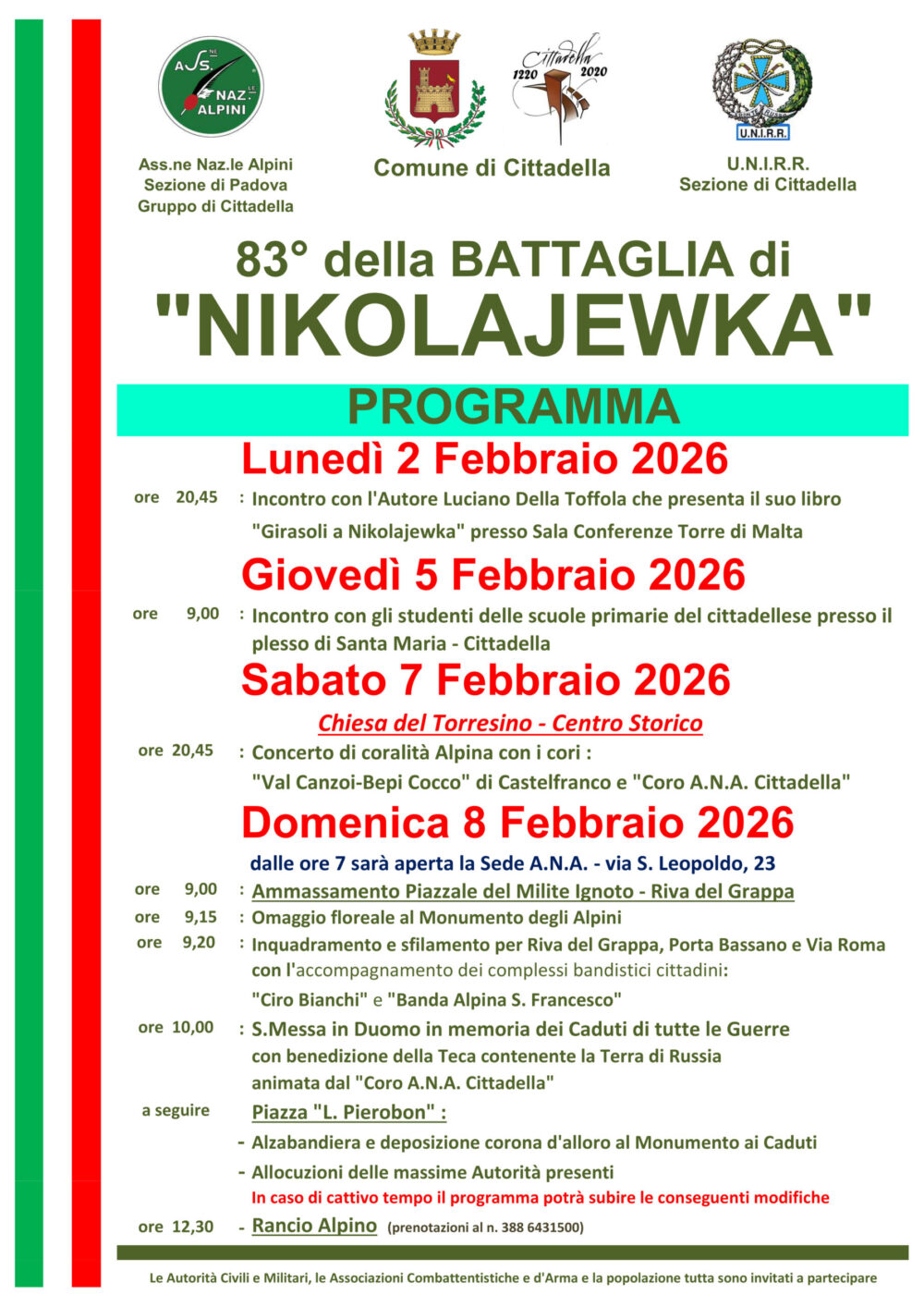 83° anniversario della Battaglia di Nikolajewka – Presentazione del libro “Girasoli a Nikolajewka”