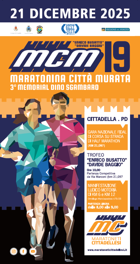 Domenica 21 Dicembre 2025 a Cittadella arriva la Maratonina Città Murata.
