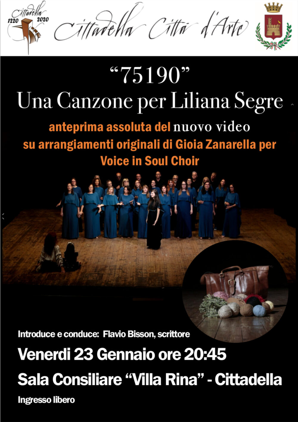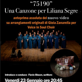 Venerdì 23 Gennaio 2026 a partire dalle ore 20:45 verrà presentato alla cittadinanza presso la Sala Consiliare di Villa Rina il video musicale del brano "75190" dedicato alla storia della Sen. Liliana Segre e al periodo da essa vissuto in prigionia.