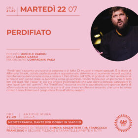 • ore 21:30 Spettacolo PERDIFIATO di e con Michele Vargiu (Regia Laura Garau - Produzione Compagnia Vaga)
