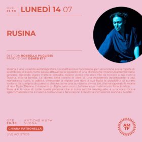 - ore 21:30 Spettacolo RUSINA di e con Rossella Pugliese (Produzione Deneb Ets)
