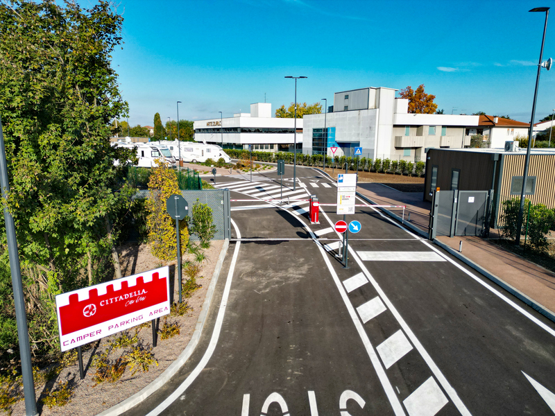 La nuova area sosta camper di Cittadella si trova a nord-ovest della città, in Via Tofana di Rozes, ben servita e raggiungibile da Via G. Galilei.