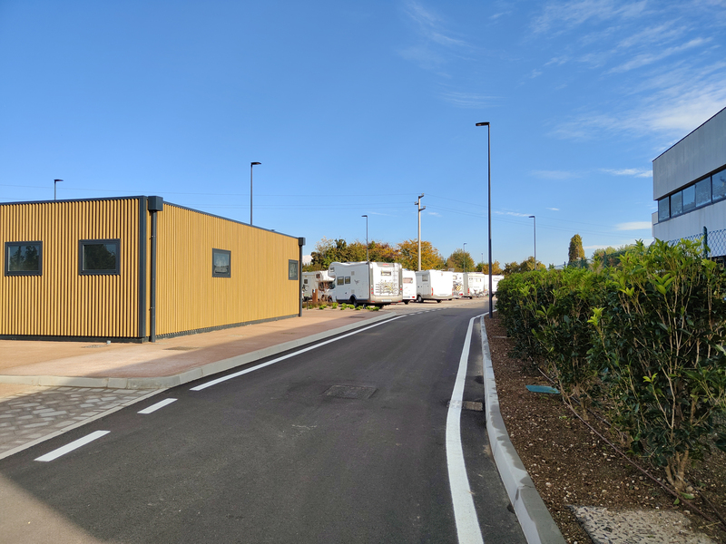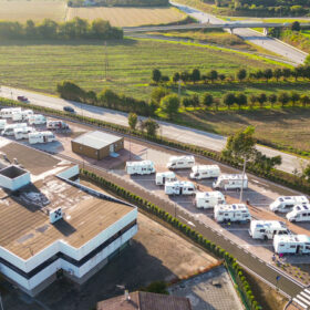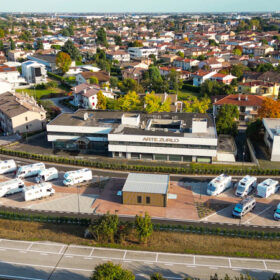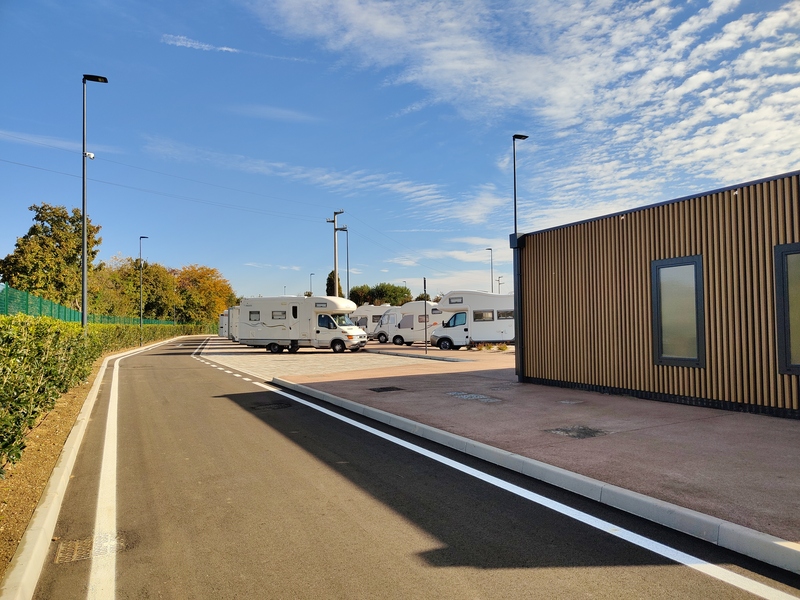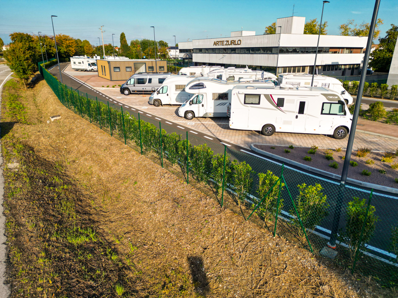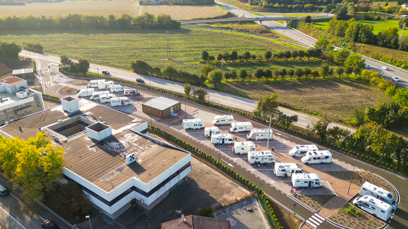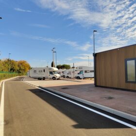 L’area ha una superficie di 8.000 mq ed è dotata di n. 22 piazzole di sosta, con camper service, controllo accessi, bagni, docce, lavanderia, aree a verde, impianto di illuminazione a led e video sorveglianza.