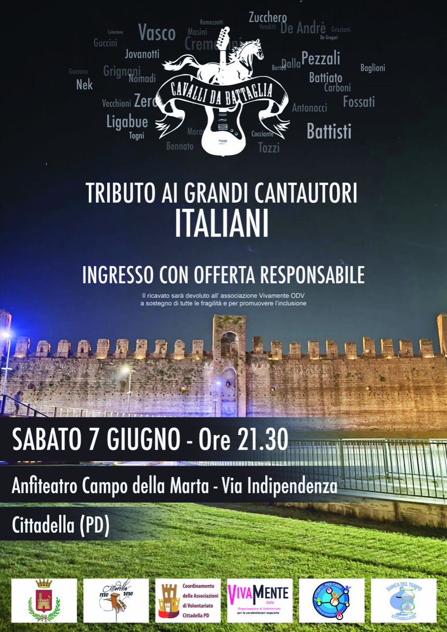 Un concerto in tributo ai cantautori italiani: questo quanto in programma Sabato 7 Giugno 2025 alle ore 21:30 presso l'Anfiteatro di Campo della Marta.