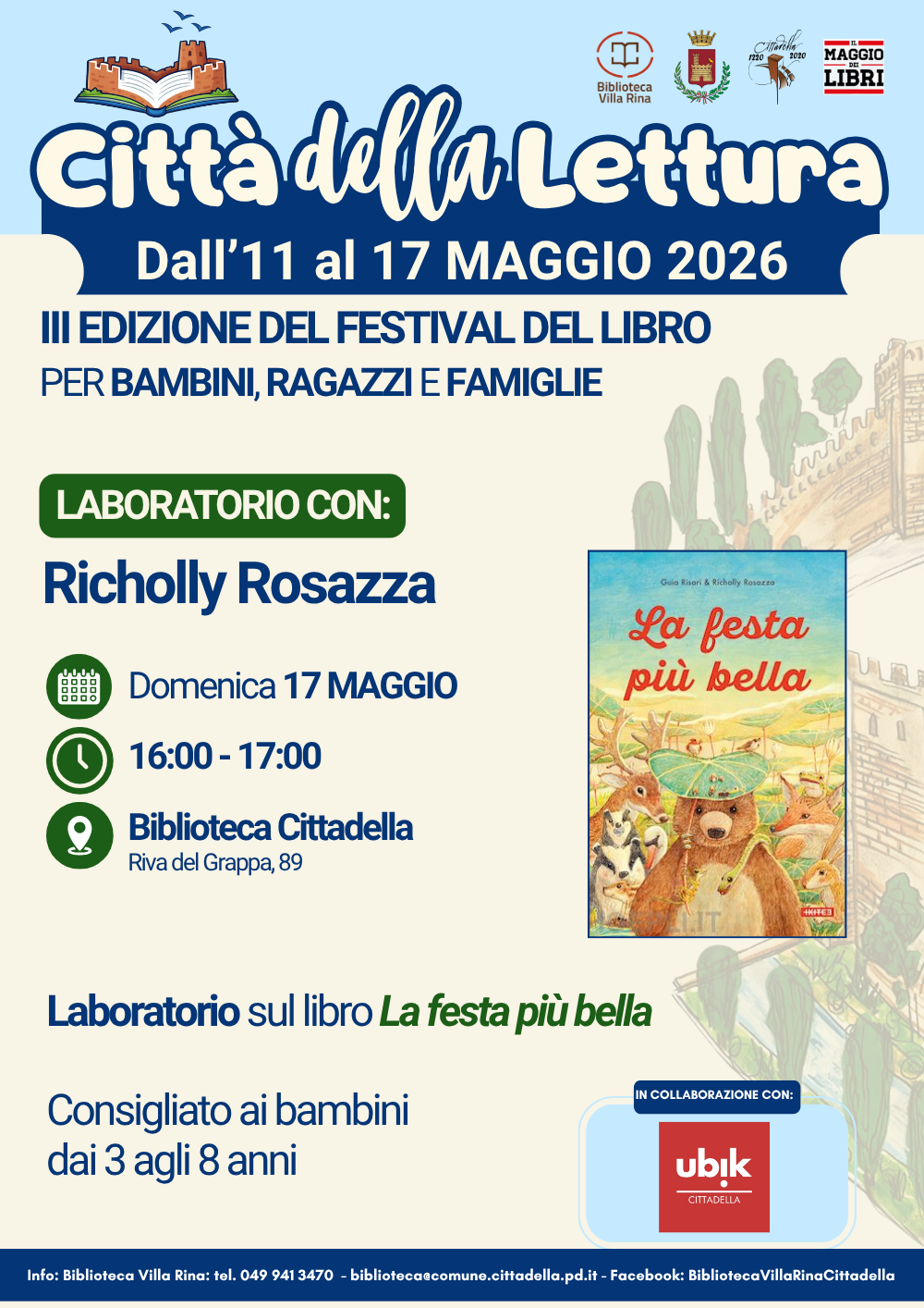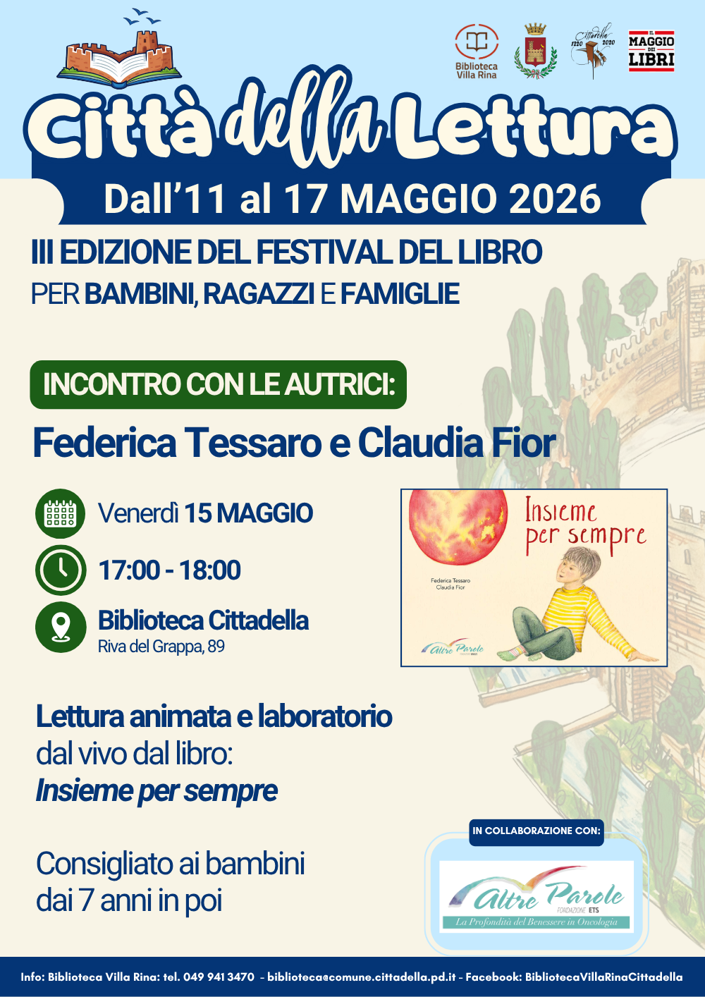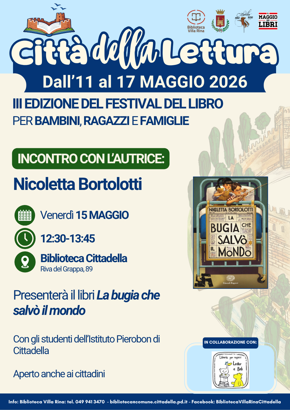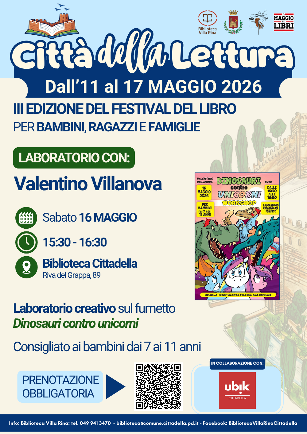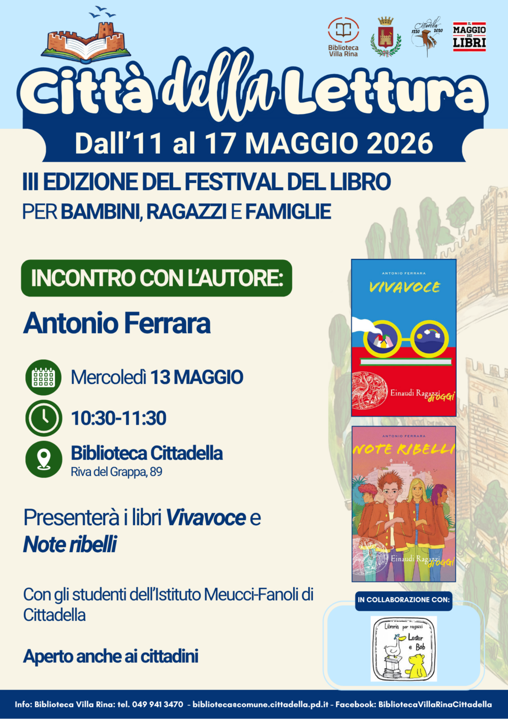 Info: Biblioteca Villa Rina: tel. 049 941 3470 - biblioteca@comune.cittadella.pd.it - Facebook: BibliotecaVillaRinaCittadella