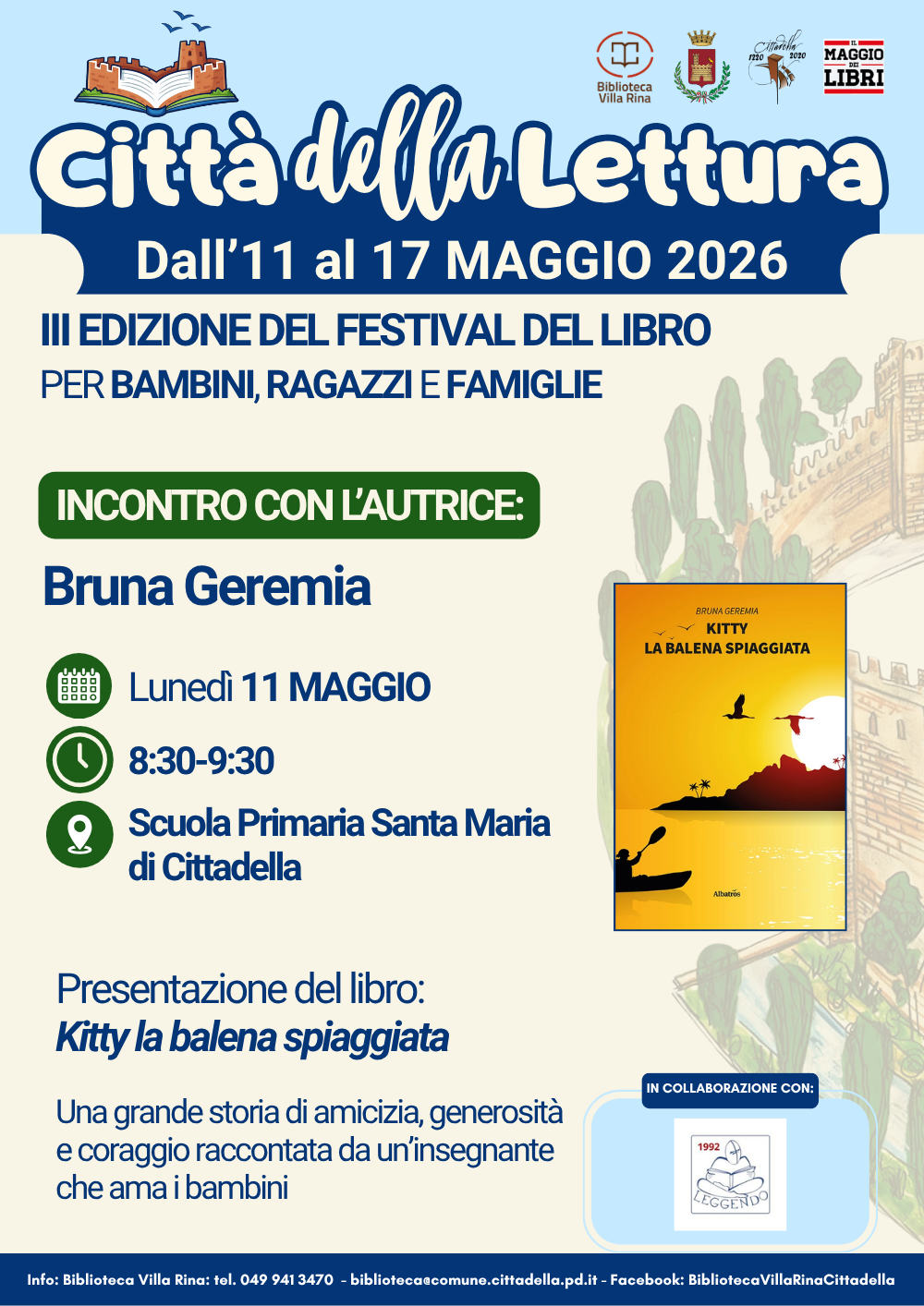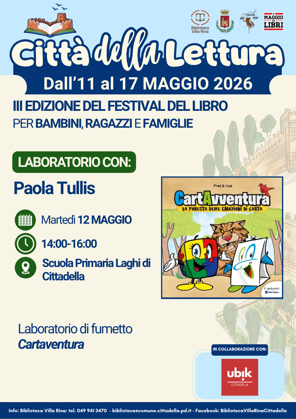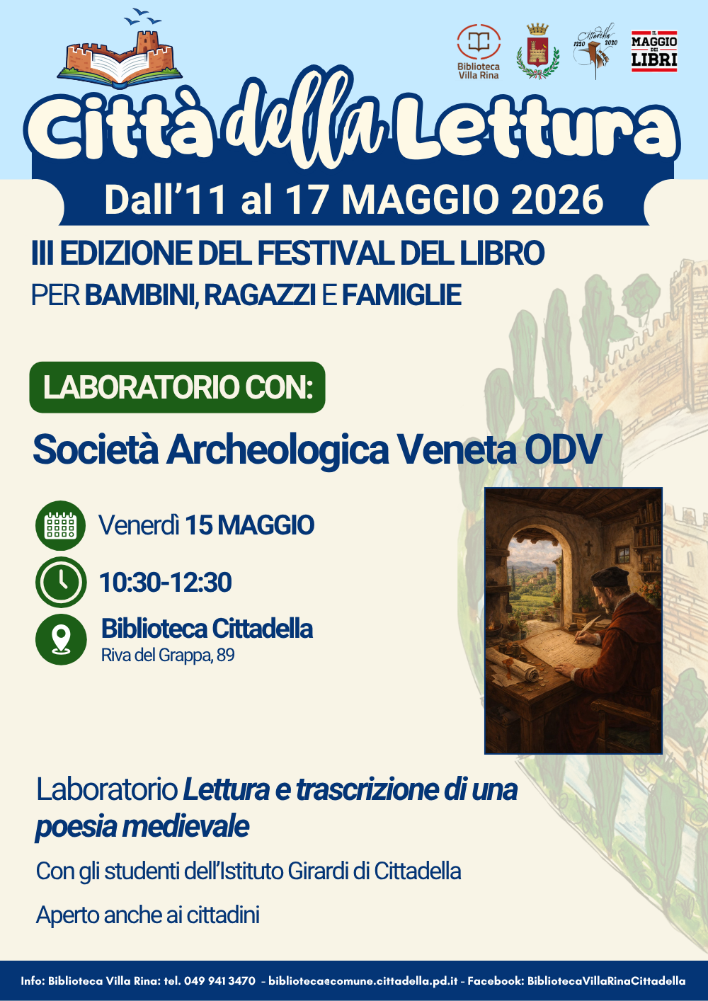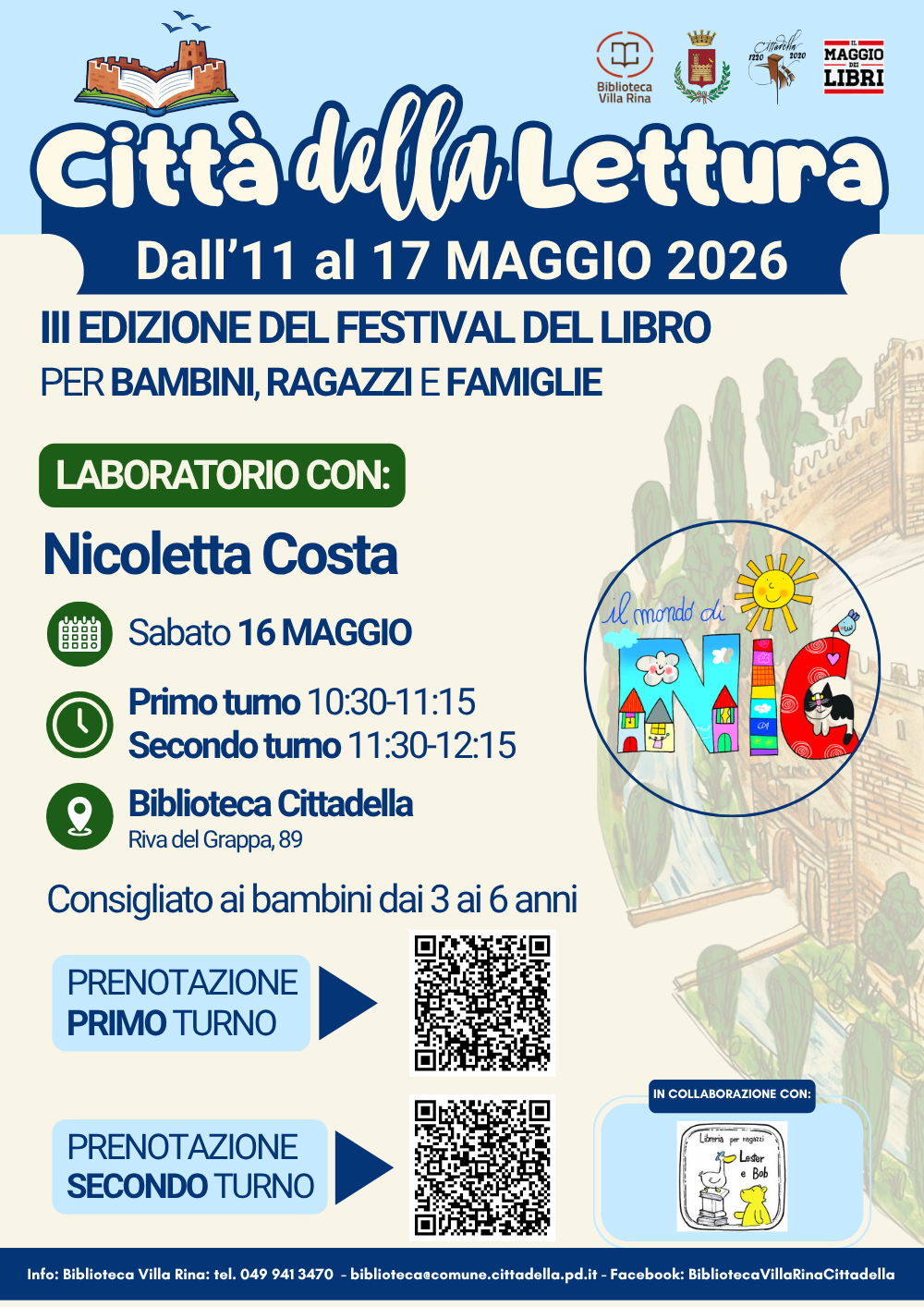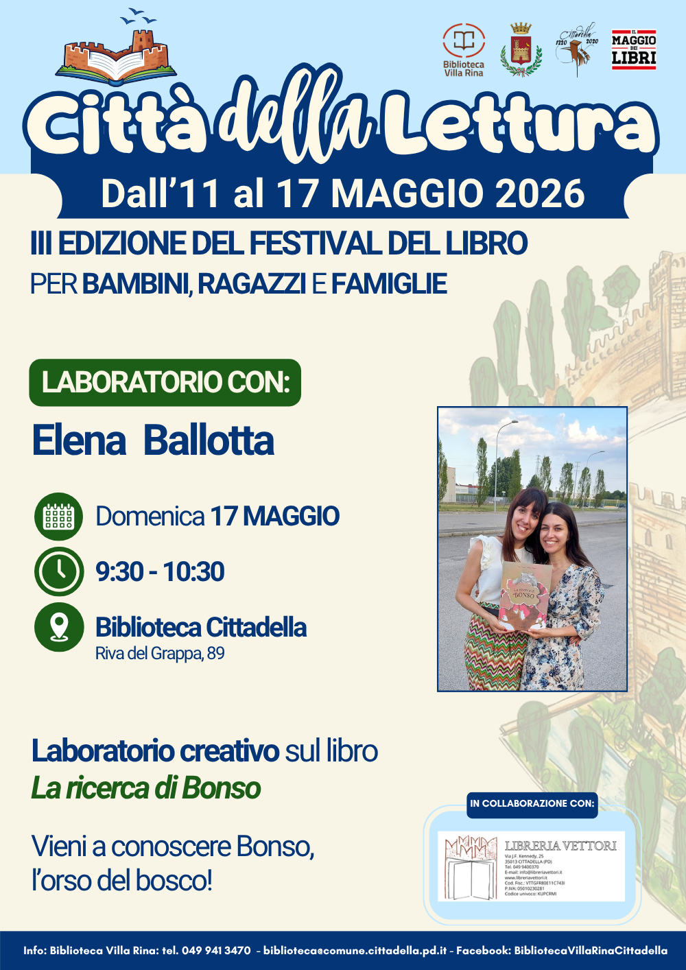 Info: Biblioteca Villa Rina: tel. 049 941 3470 - biblioteca@comune.cittadella.pd.it - Facebook: BibliotecaVillaRinaCittadella