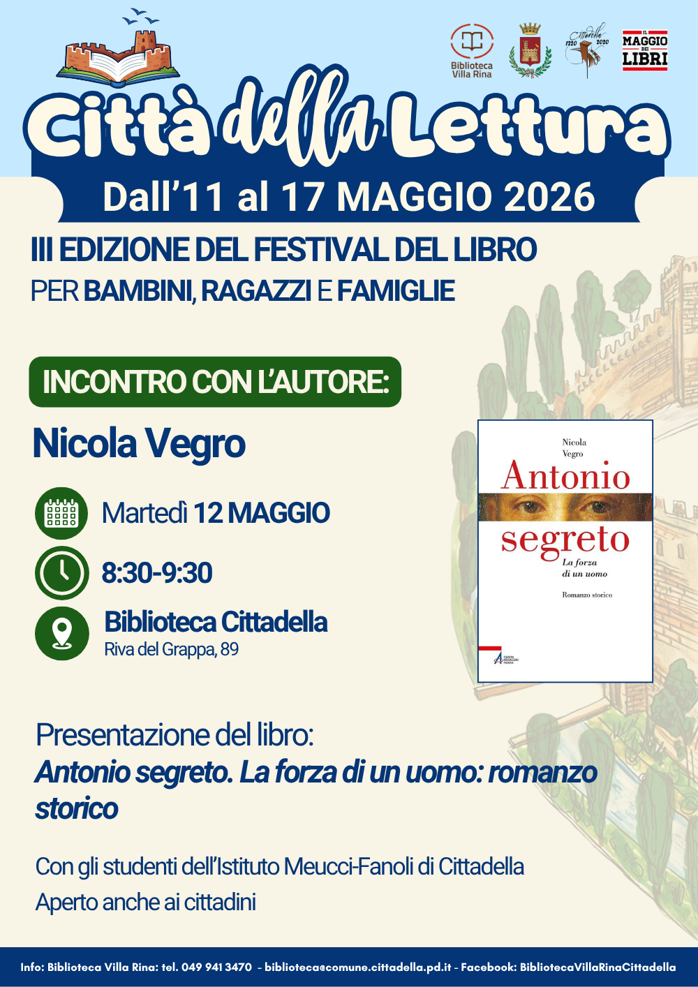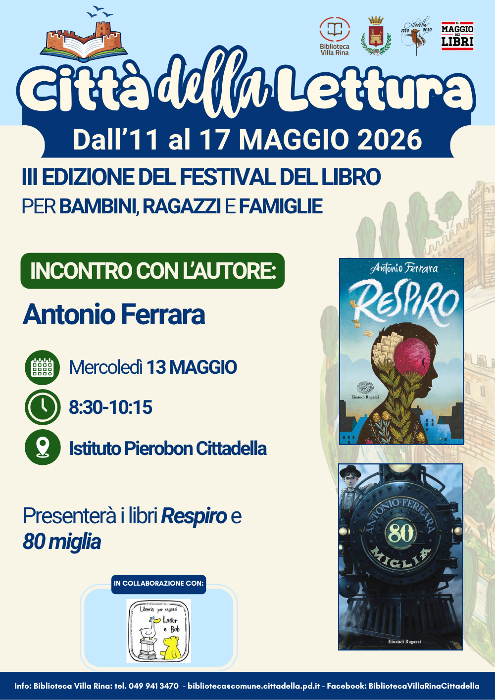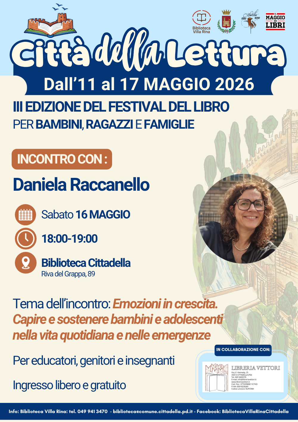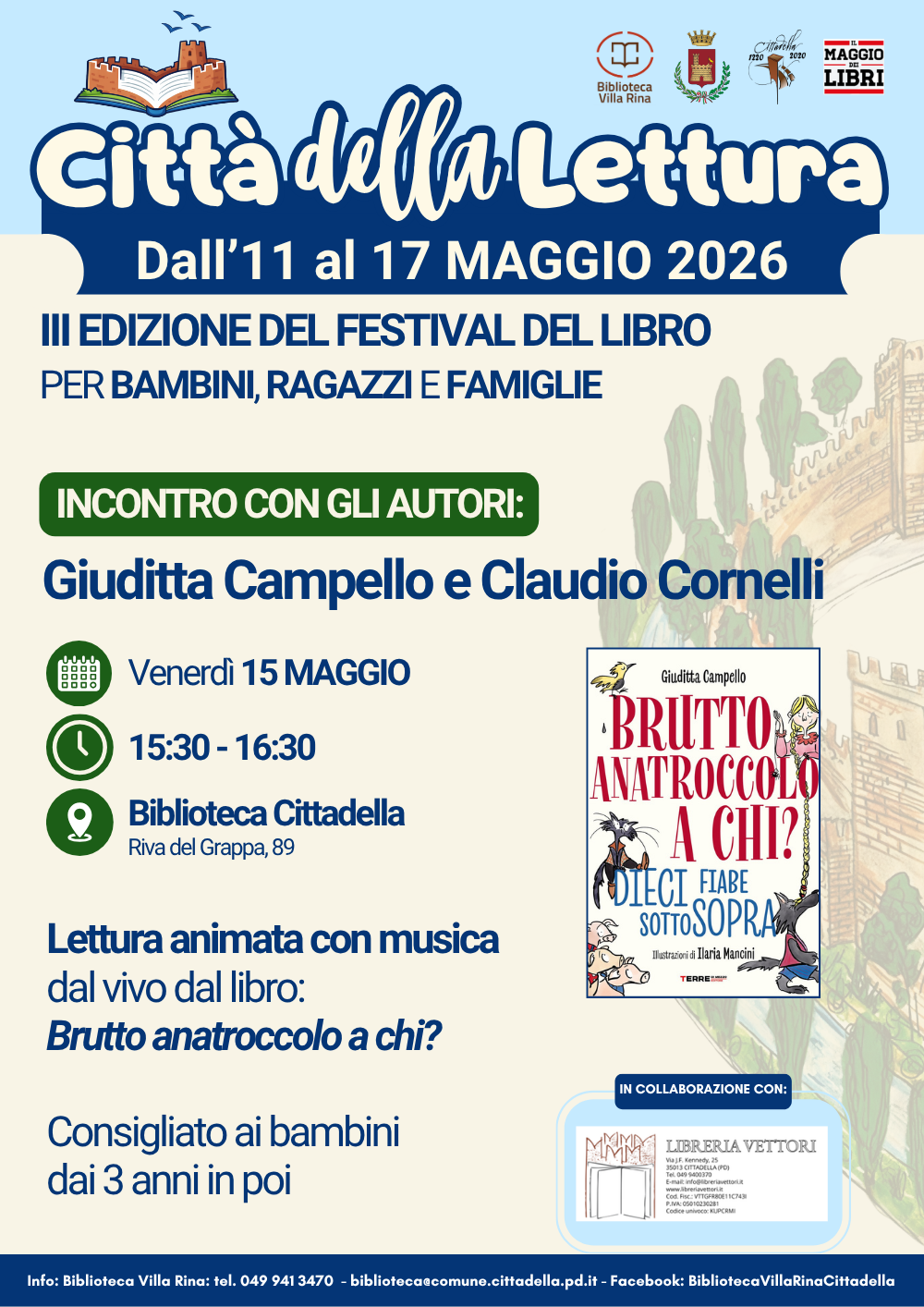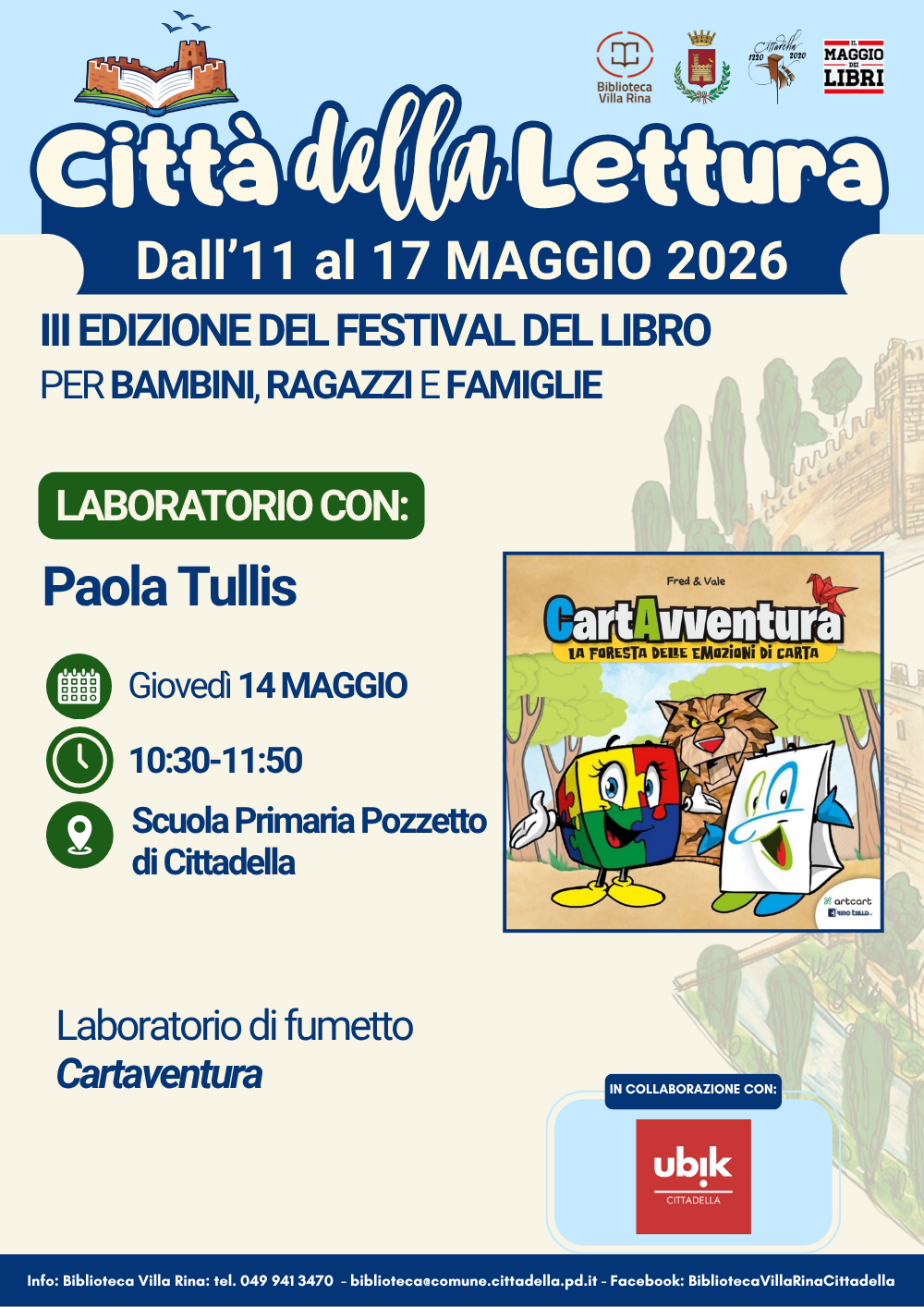 Info: Biblioteca Villa Rina: tel. 049 941 3470 - biblioteca@comune.cittadella.pd.it - Facebook: BibliotecaVillaRinaCittadella