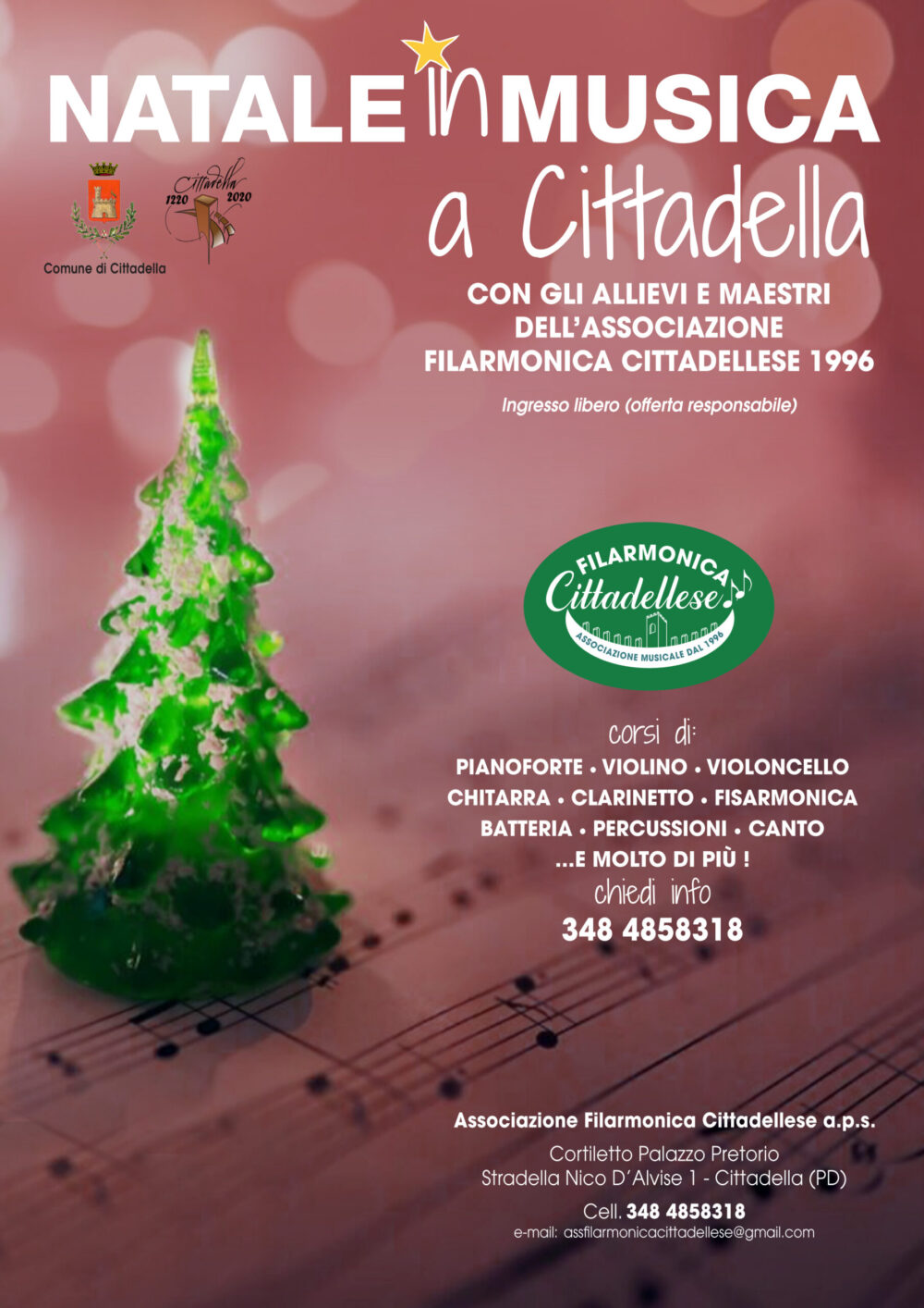 Cos'è Gli allievi e i maestri dell'associazione Filarmonica cittadellese 1996 presentano Natale in Musica a Cittadella Scoprite la programmazione in allegato.