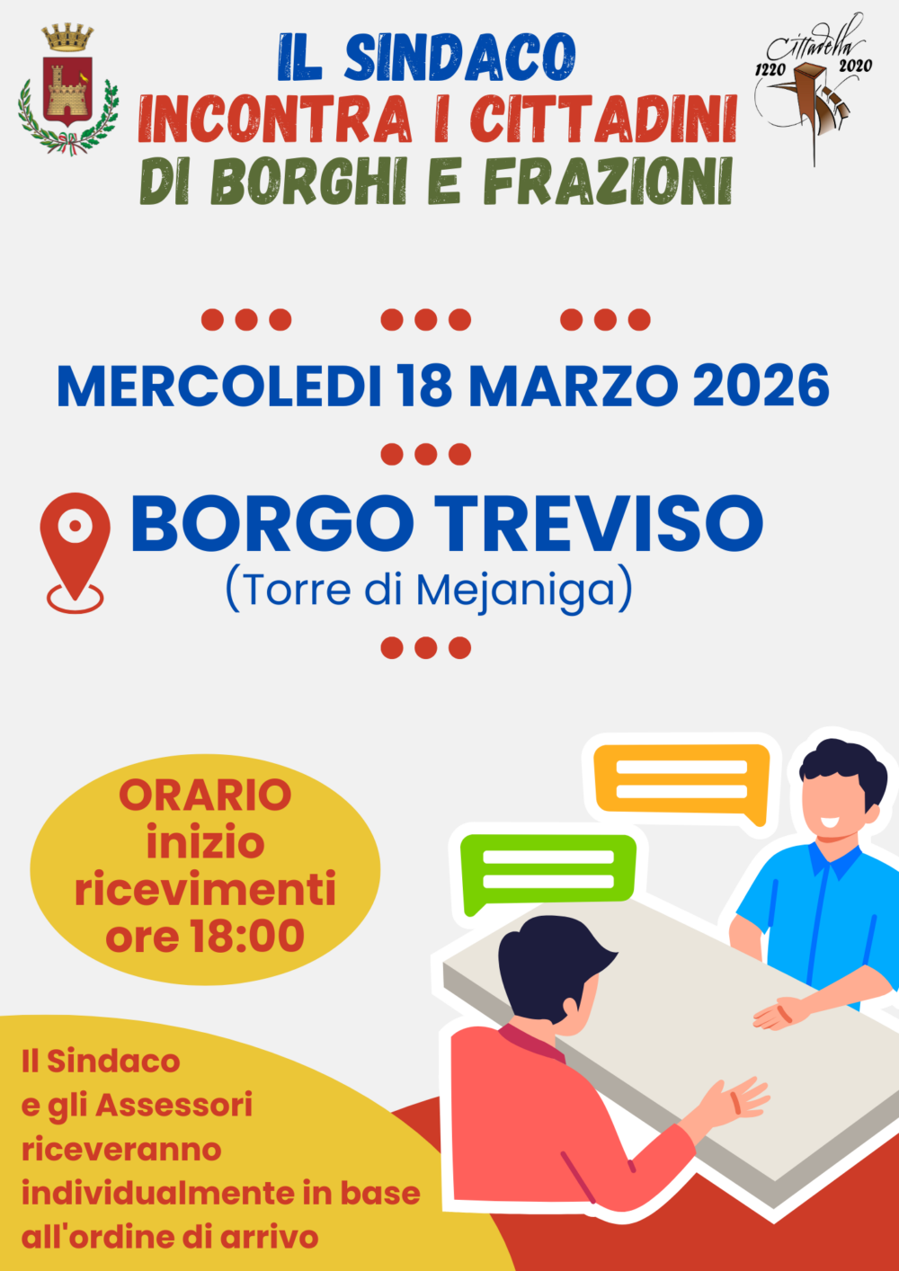 Torna il consueto appuntamento del Sindaco con i cittadini di Borghi e Frazioni.