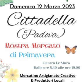 Domenica 12 Marzo 2023 dalle ore 09:00 alle ore 19:00 mostra mercato di primavera in centro storico a Cittadella.