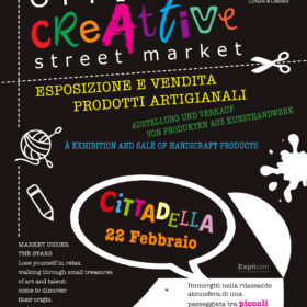 Domenica 22 Febbraio 2026 arriva a Cittadella OFFICINE CREATTIVE - Street Market con esposizione e vendita di prodotti artigianali.