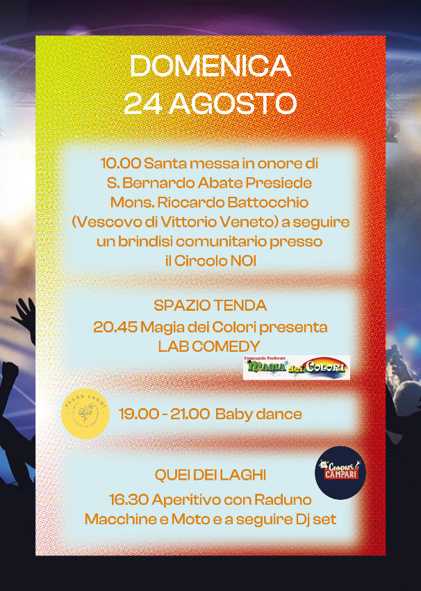 • 10:00 - Santa Messa in onore di S. Bernardo Abate e a seguire un brindisi comunitario presso il Circolo NOI