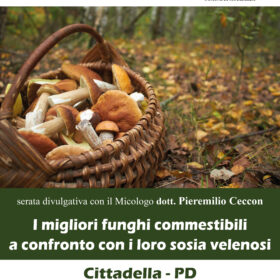 Il Gruppo Micologico Cittadellese vi invita alla serata divulgativa "I migliori funghi commestibili a confronto con i loro sosia velenosi" a cura del micologo dott. Pieremilio Ceccon.