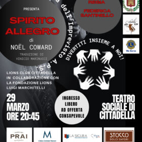 𝐒𝐚𝐛𝐚𝐭𝐨 𝟐𝟗 𝐦𝐚𝐫𝐳𝐨 𝐚𝐥𝐥𝐞 𝟐𝟎:𝟒𝟓 presso il 𝐓𝐞𝐚𝐭𝐫𝐨 𝐒𝐨𝐜𝐢𝐚𝐥𝐞 𝐝𝐢 𝐂𝐢𝐭𝐭𝐚𝐝𝐞𝐥𝐥𝐚 andrà in scena lo spettacolo "𝐒𝐩𝐢𝐫𝐢𝐭𝐨 𝐀𝐥𝐥𝐞𝐠𝐫𝐨" con la 𝐂𝐨𝐦𝐩𝐚𝐠𝐧𝐢𝐚 𝐝𝐞𝐥𝐥'𝐈𝐦𝐩𝐫𝐞𝐯𝐢𝐬𝐭𝐨.
