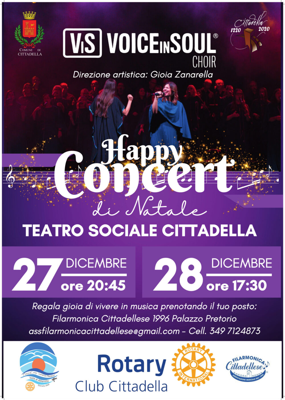 Il Voice in Soul Choir dell'associazione Filarmonica cittadellese 1996 vi invita a Happy Concert di Natale.