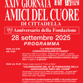 Domenica 28 Settembre 2025 ricorre la XXIV Giornata AMICI DEL CUORE di CITTADELLA nonchè il 40° anniversario della fondazione dell'associazione.
